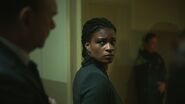 Bing is taken into processing and later placed in interrogation. Tabitha stands on the other side of the window with Chitra and Daltry. She wants first crack at Bing and guarantees she can make him talk within ten minutes.